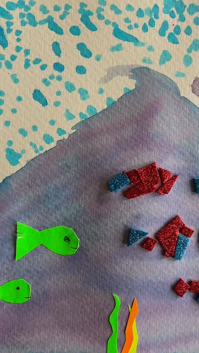 The following gallery showcases mostly paint and drawing. Children experience collage, creating with loose parts, clay, group murals and wire.
